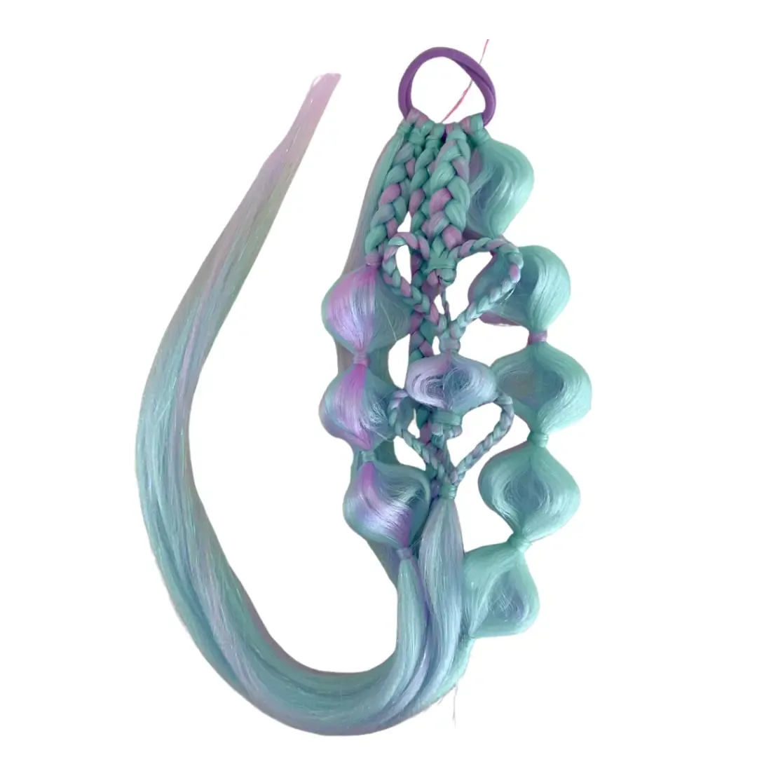 20” Inch Bubble Pony- A mix of bubbles, love hearts & plaits ‘The 5 minute braid’ is so easy to use with hair attached to a strong hair band * Tie hair into a high or low ponytail * Rap hair band around ponytail * Follow our socials for tips & style inspo perfect for kids, adults, festival’s, sport carnivals, fancy dress, crazy hair day or just for fun! care instructions- super easy to maintain, If the ends get ratty after a while apply some oil or snip the ends. If they get dirty rinse In some conditioned water & air dry. Don’t swim or sleep in the braids to make them last as long as possible.