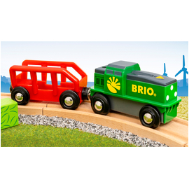 Take the animals out to pasture with the BRIO Farm Battery Train! Designed for toddlers, this battery-operated engine features a simple tap-and-go function for easy, frustration-free play. Load the wooden cow or hay onto the wagon and attach it to the train using classic BRIO magnetic connectors, then set off on a countryside adventure.
