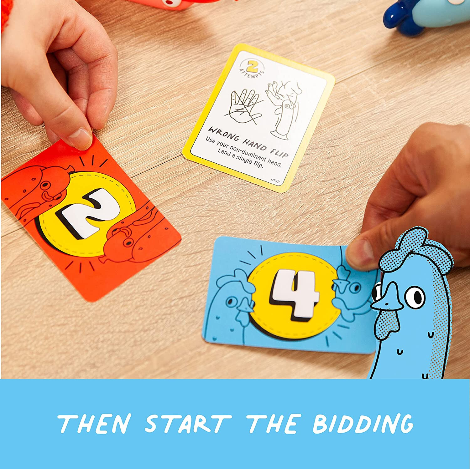 BOTTLE FLIPPING, BUT BETTER: Introducing a family party game about flipping chickens and throwing hot dogs into the air. Still not convinced? Well, keep reading!