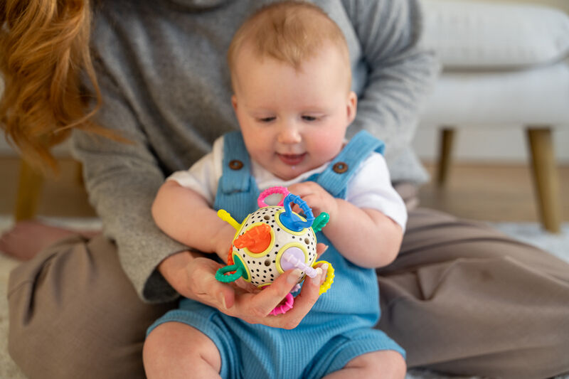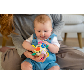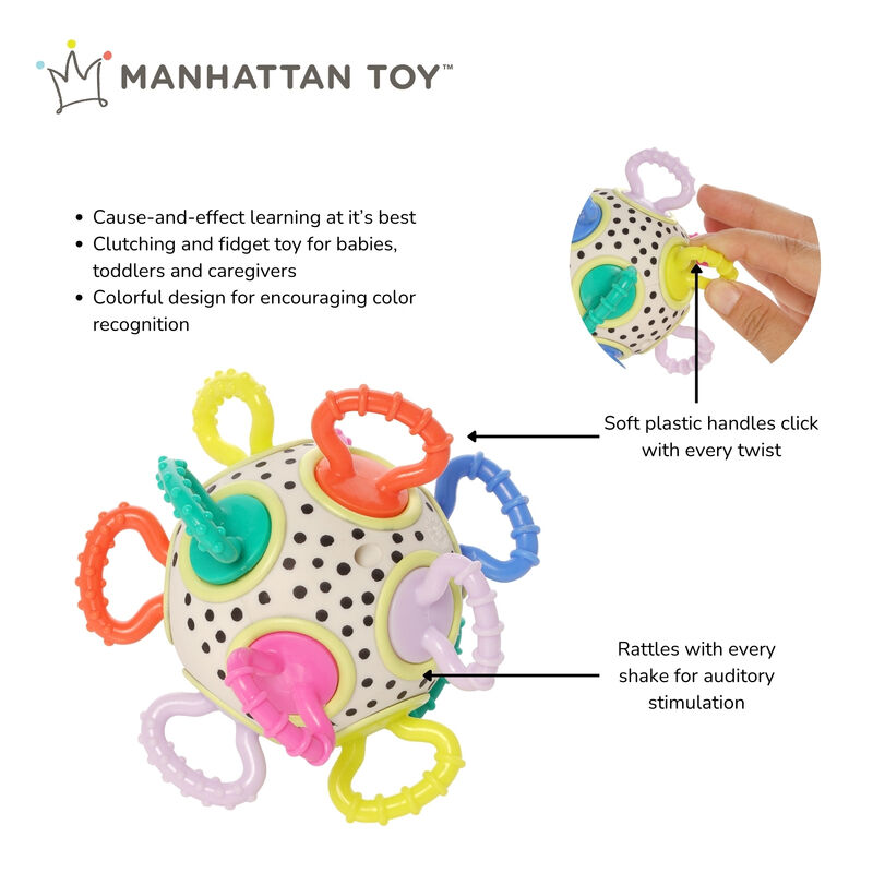 Click Clack Colorpop is a vibrant and engaging toy designed for young children. It features soft plastic handles that make a clicking sound with every twist, paired with a centre ball that contains tiny beads, creating a rattling sound with each shake. This toy is ideal for supporting fine motor development, auditory stimulation, and cause-and-effect learning. It's crafted to be safe for children, free from BPA and PVC, and meets various safety regulations.