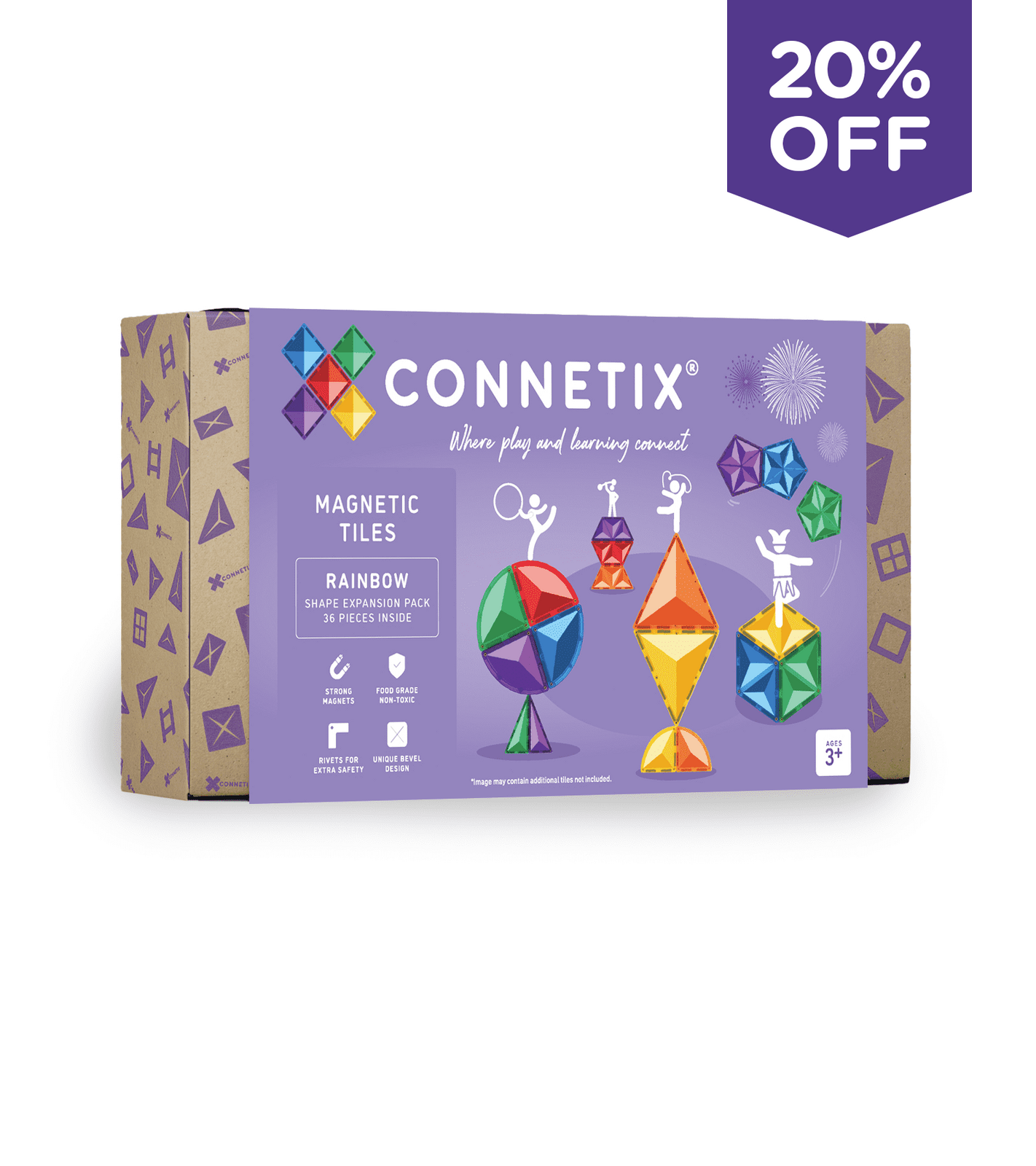 The perfect addition to the CONNETIX range, compatible with existing magnetic tile collections, the Rainbow Shape Expansion Pack promotes a new level of STEAM learning – effortlessly connecting learning and fun. The possibilities are endless!