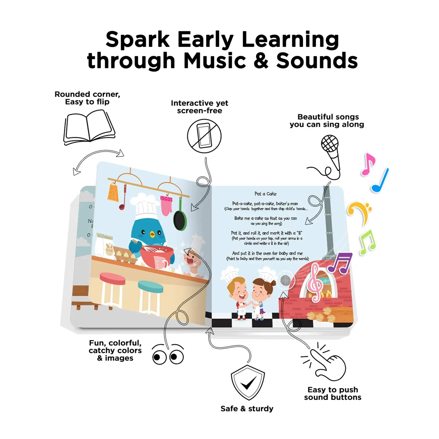 Jump, clap, and sing along with an engaging Action Songs sound book! With its collection of high-energy tunes like ""Simon Says"" and ""Do you know the Muffin Man?"", this book inspires active participation while improving their fine motor skills through play.