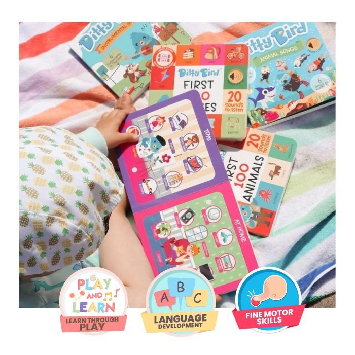 Ditty Bird 100 Words Series is a unique, interactive book series with great sounds, fun facts & favourite children's songs. With colourful illustrations, kids love the wonderful world of Ditty Bird, friendly and full of details. It's time to discover their first 100 words and expand their vocabulary.