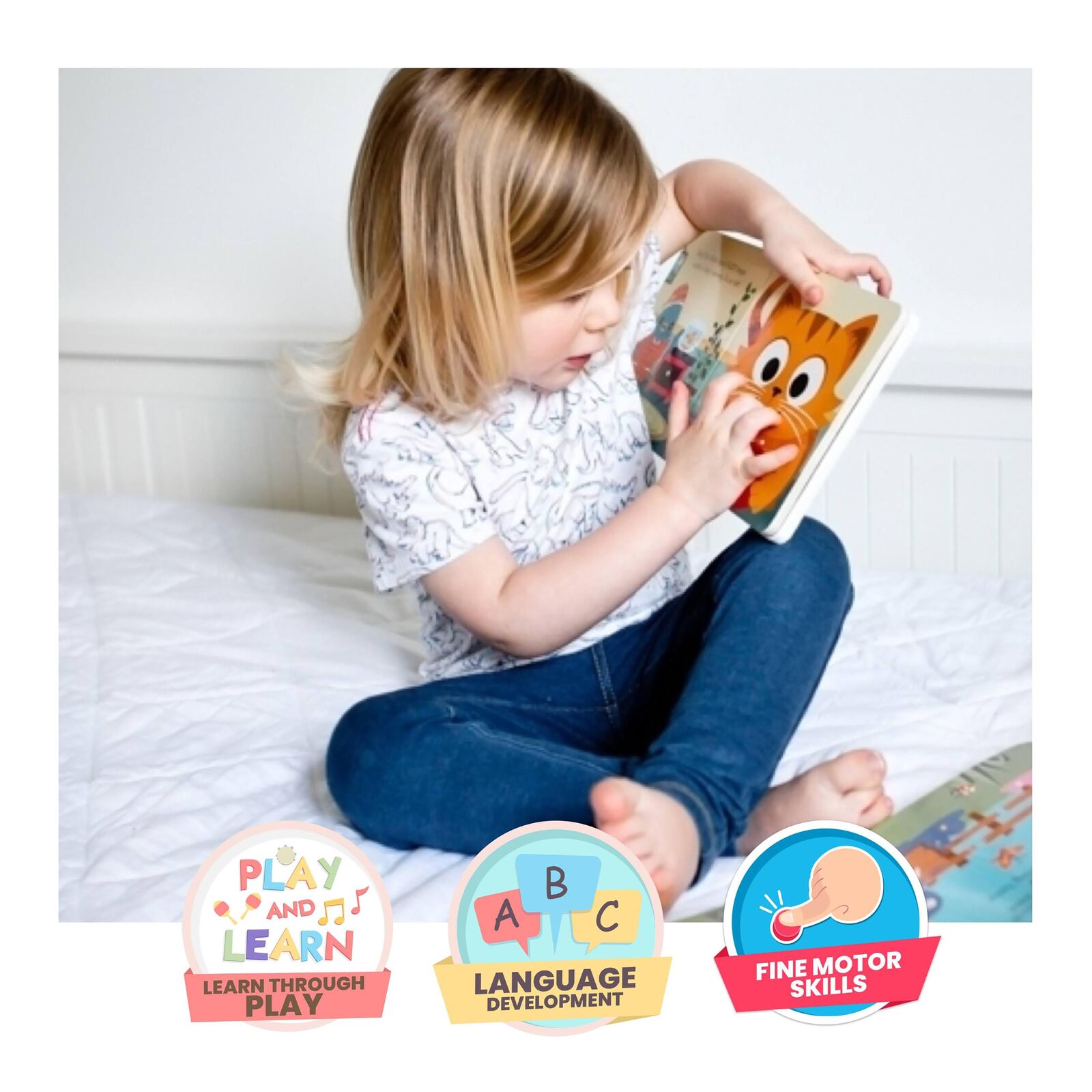 Inspired by the Montessori method of education, this tactile touch and feel sound book is great for babies from 6 -18 months. From Rosie the Puppy's shiny collar to Chloe the Owl's wooly tummy, this book combines 5 captivating textures and 5 real animal sounds to create a multisensory learning experience.