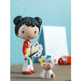 Meet the artistic Tinyly Barbouille with her paintbrush, art palette and sidekick Gribs the cow..