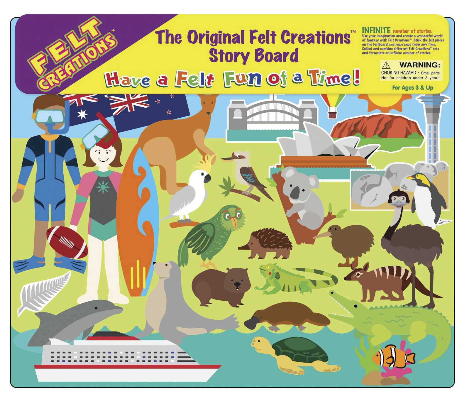 The Felt Creations Explore Australia & New Zealand felt story board set features a felt board and loads of felt accessory pieces to create all of your favourite scenarios.