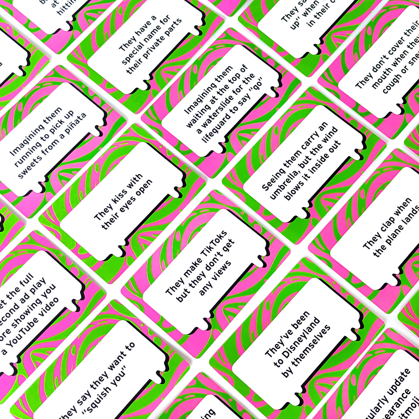 When they share inspirational quotes online. When they call dogs ‘doggos’. This is the ultimate party game for teens and adults to share their icks.