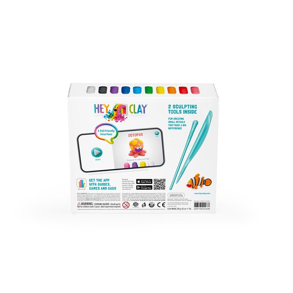 Become a professional clay artist! This vibrant clay is soft, lightweight, non-sticky, nontoxic, and stain-free - perfect for young artists taking their first step into the magical world of clay creativity. The fun starts once you download the free app and gain full access using the code included in the box. Pick one of the six ocean creatures - the octopus, shark, eel, discus fish, clownfish, or stingray. Then, grab the sculpting tools and follow along with the interactive 3D step-by-step instructions to masterfully mold it, one simple shape at a time. Spheres, cylinders, facial features, textures, and more... Kids learn real sculpting techniques without even realizing it! Jumpstart your young artist's new career with the wildly fun Hey Clay Ocean Creatures set.