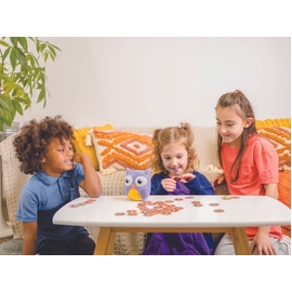 Shake the little owl and listen carefully to the sound he makes, then flip a token on the table to see if it matches the sound.