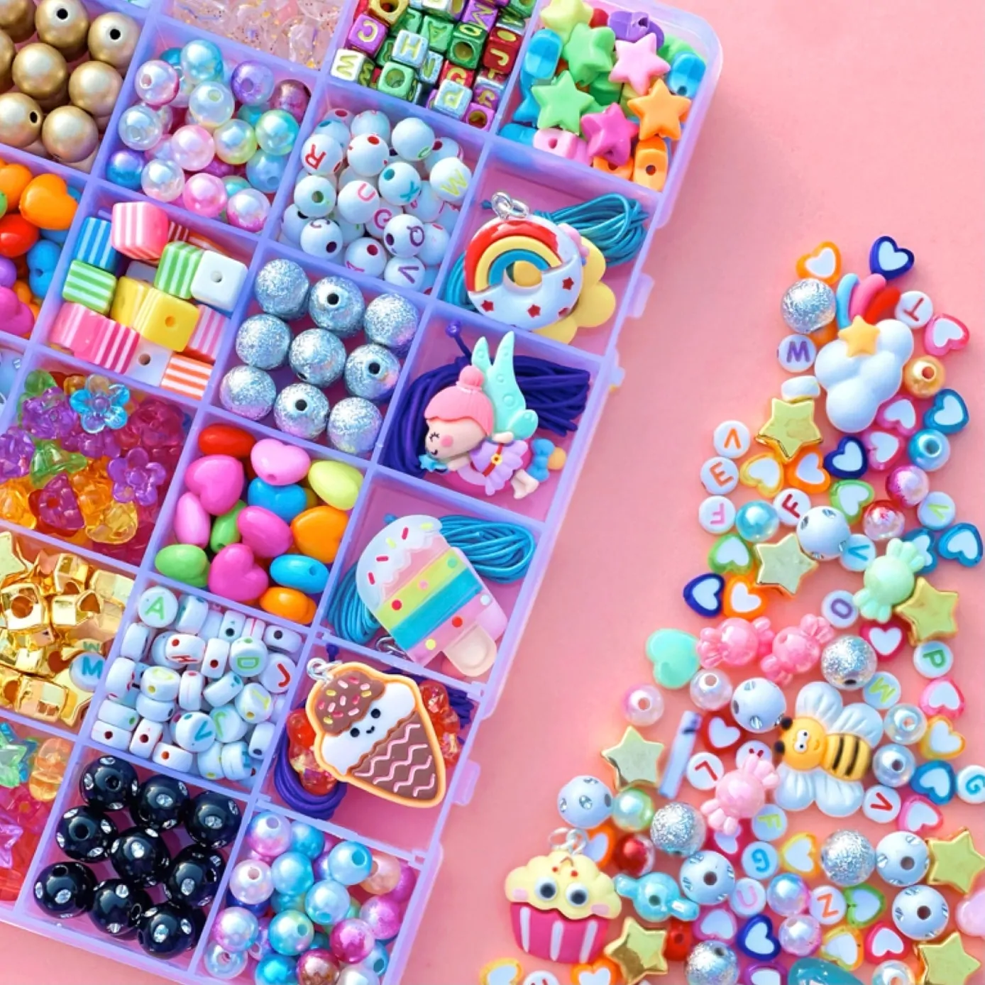 Make your own bracelet with interchangeable beads and charms Each kit comes with a mix of charms and bracelet. Available in two colours.