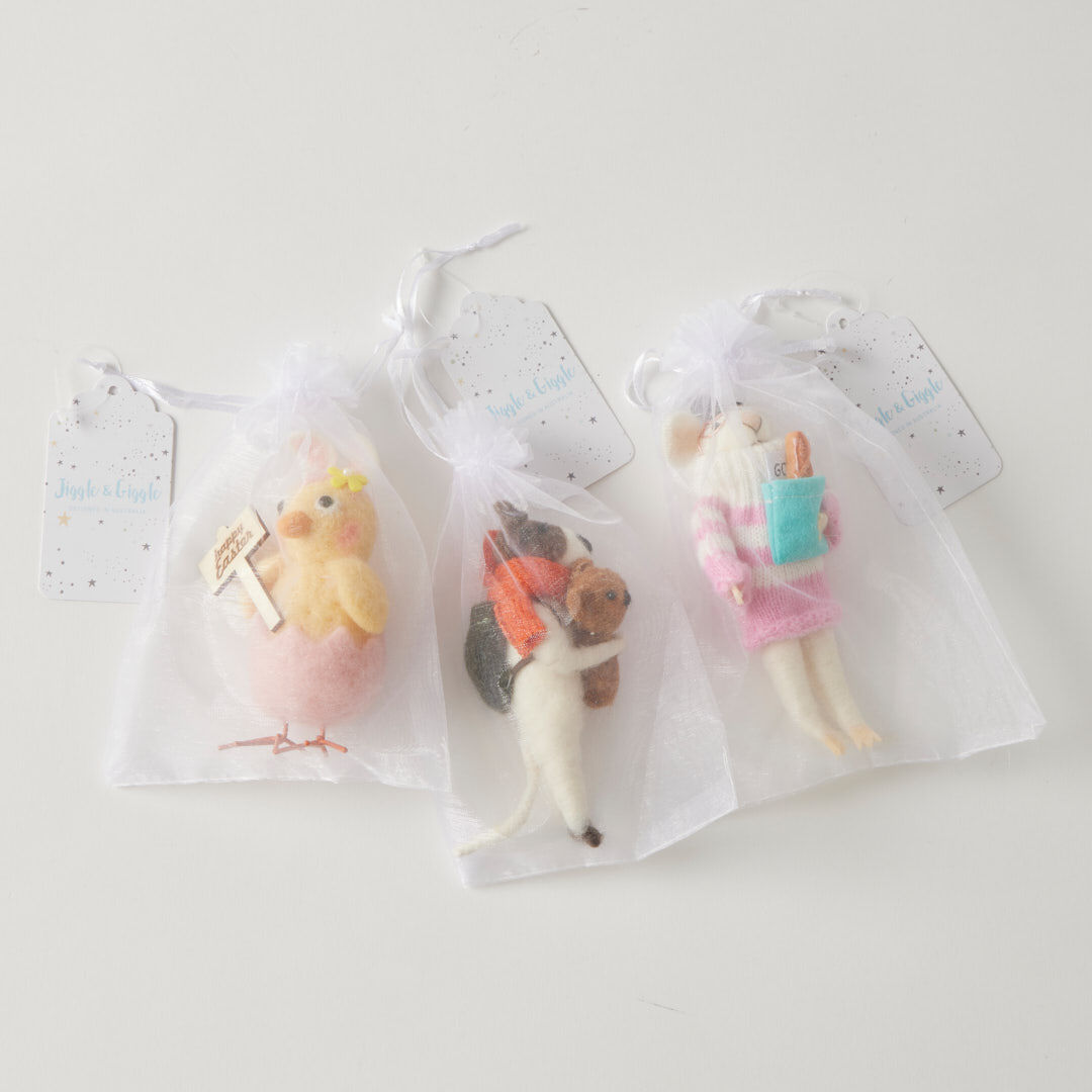 Indulge in whimsical charm with our handcrafted felt figurines! Crafted from wool, these adorable tiny animals don charming outfits, adding a delightful touch to your decor. For decorative purposes only.