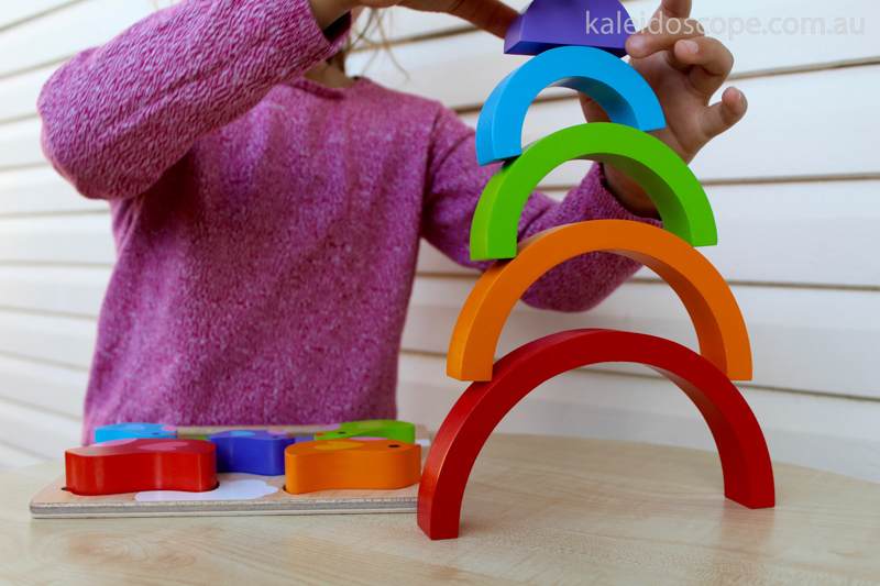 - Making a rainbow. Once the colours are learnt then may follow the introduction of the concept of smallest to largest or largest down to smallest. Pick and place the smallest piece of the rainbow. Which piece comes next? Or pick and place the largest piece of the rainbow etc.