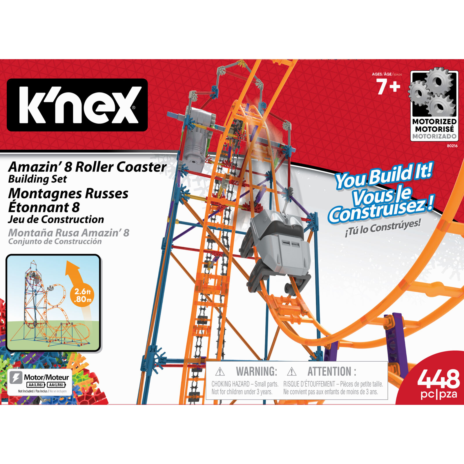 Create your own gravity-defying coaster rides with the knex Amazin 8 Roller Coaster 448 Pieces!