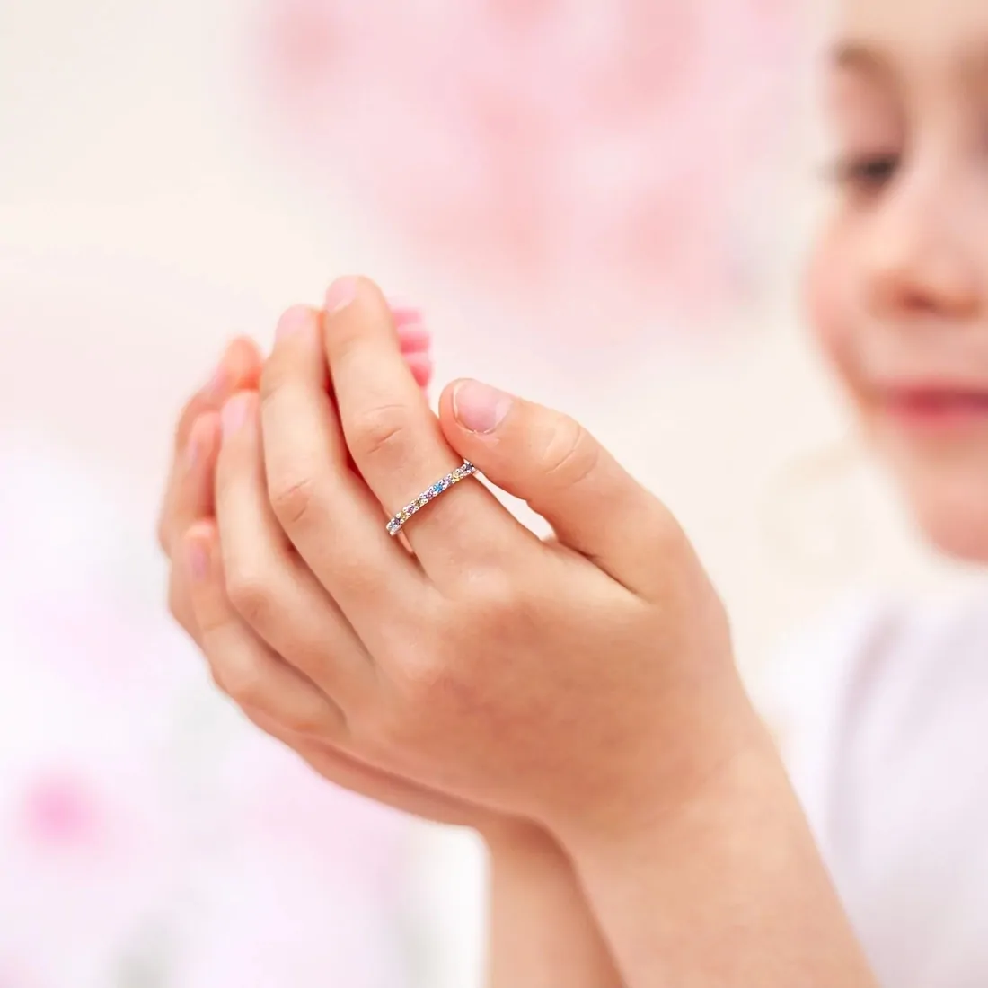 Every wish can be heard and answered with our simple but eye-catching Rainbow Connection Ring. A cavalcade of gems from start to end with over 40 individual crystals, it is something amazing to keep you gazing endlessly at the sheer number of colours. Beautifully presented in the Velvet Shell Box.