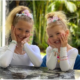 Join this whimsical race between a carousel horse and a hot air balloon! Who will make it to the candy stripe charm in the middle first? Will the shining silver star and its crystals dazzle the carousel horse? Or did the stunning white flower stop the hot air balloon in its flight? A celebration of fun, cuteness, and joy in a bracelet. Matching necklace and adjustable ring available. Available loose or in our signature white packaging. Charms are silver-plated base metal, some with enamel coating, resin charms, and glass charms. The chain measures 15cm plus an extension chain. The charms do not come off this bracelet so are safe for children 3 and above. Do not wet the charm bracelet or swim with it in the ocean or swimming pool.