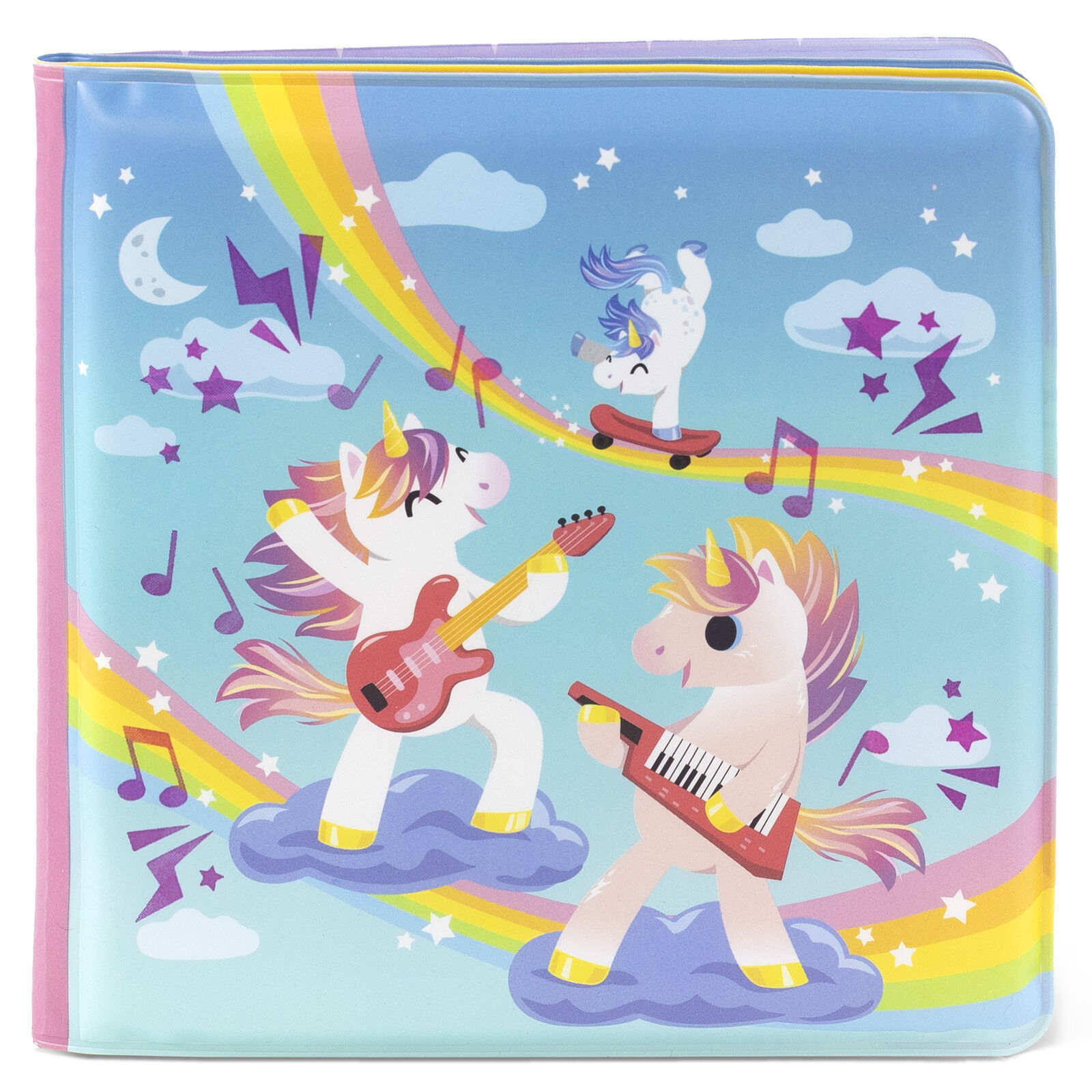 Unicorns are ready to bring the magic in this super fun, interactive bath book. Kids will delight in transforming the rock’n’rolling, ice-cream-mountain skating, super rad unicorns, with cold water revealing fun details and warm water making them magically disappear again!