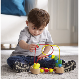 Melissa & Doug's First Bead Maze is the perfect way to introduce your little one to shapes and colours. Sitting in a high chair will be more fun with this fantastic bead maze, featuring brightly coloured, multi-shaped beads that spin and slide along red and yellow wire pathways anchored by a strong suction cup base. Encourages colour recognition, hand-eye coordination, and fine motor development through play!