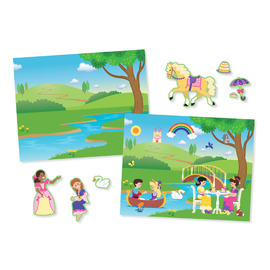 This Melissa & Doug Princess Castle Reusable Sticker Pad will keep litte ones creating their own story scenes for hours! With over 200 royal stickers to place and five glossy background scenes to fill, this reusable activity pad sets the stage for countless princess sticker pictures! The cling-style stickers are easy to place, peel, and reposition, and fit in any of the five scenes - including a royal bedroom, ballroom, throne room, garden promenade, and brook-side garden. The oversize sticker book is bound at the top for neat storage and easy travel. (The rigid cardboard back makes it a great laptop activity for the car or airplane!) Background scenes and sticker pages tear out cleanly, too, so it's easy to lay them side by side on a tabletop or pass them around to share with a group. Great for fine motor skills, hand-eye coordination, narrative thinking, communication skills, and creative expression.