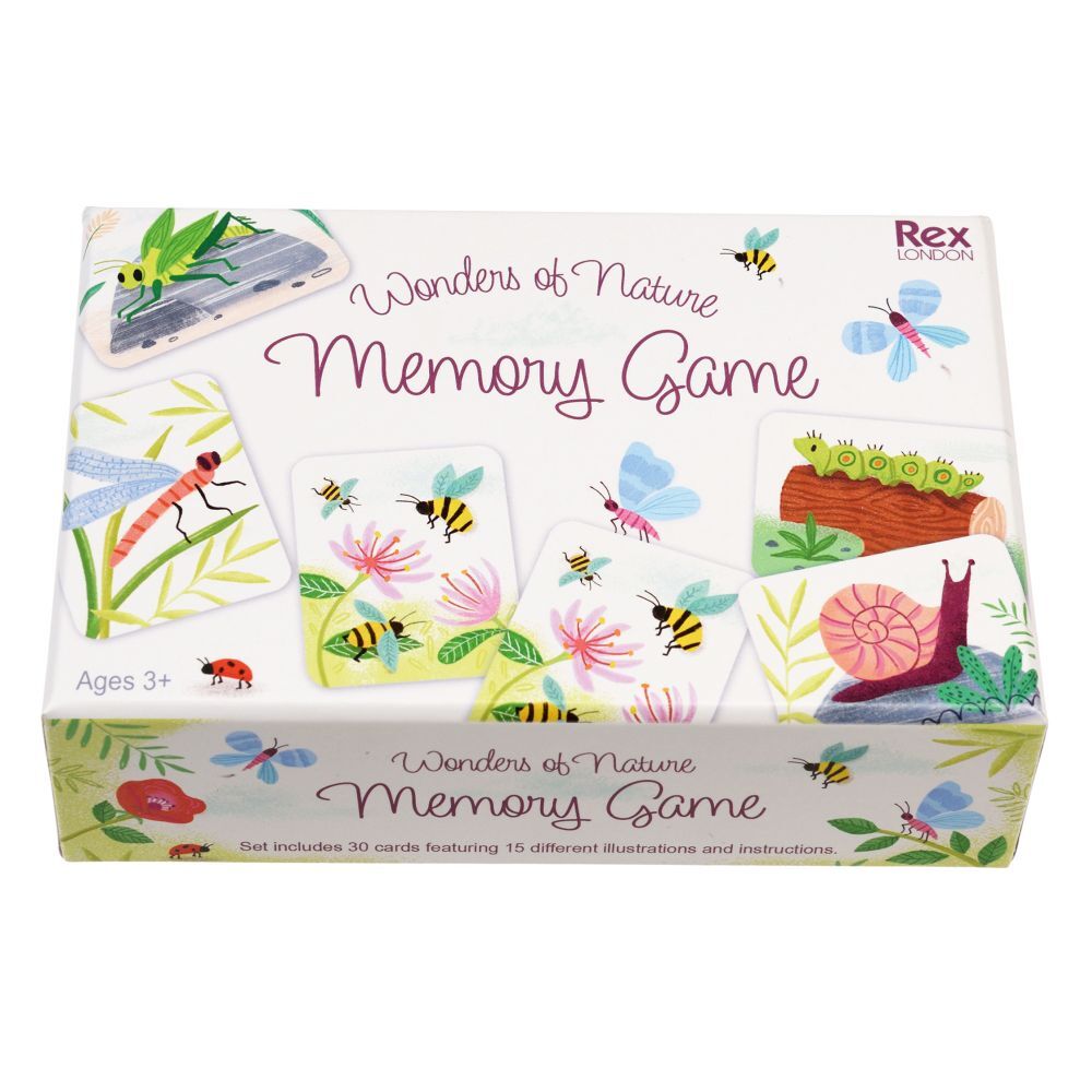 Rex London Memory Game – Wonders of Nature: Match and Discover the Beauty of Nature! Product Description: Immerse yourself in the wonders of the natural world with the Rex London Memory Game – Wonders of Nature! Featuring 30 beautifully hand-illustrated cards showcasing butterflies, grasshoppers, and other delightful wildlife, this memory game is both educational and entertaining.