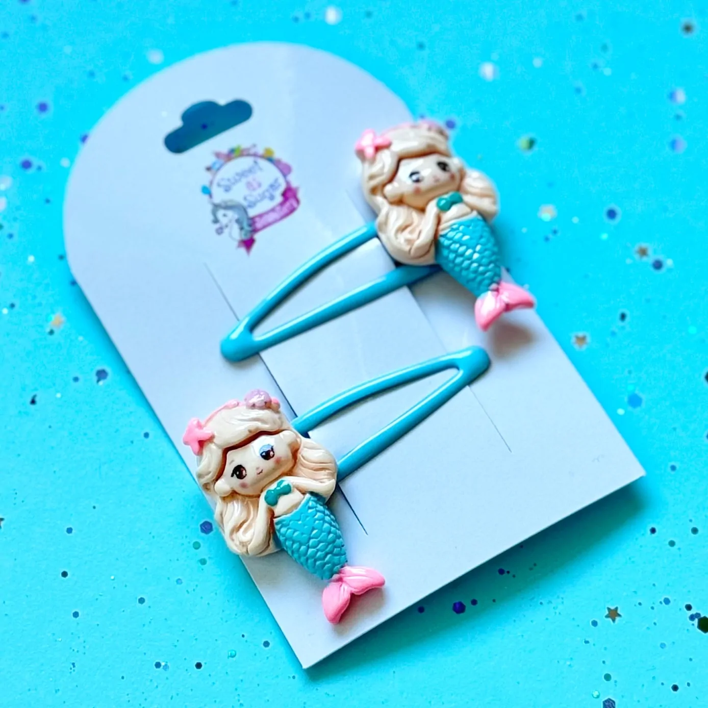 Explore the enchanting world with Sweet As Sugar Jewellery's Mermaid Hair Clips. These stunning pieces are perfect for adding a magical touch to your little one's hairstyle.
