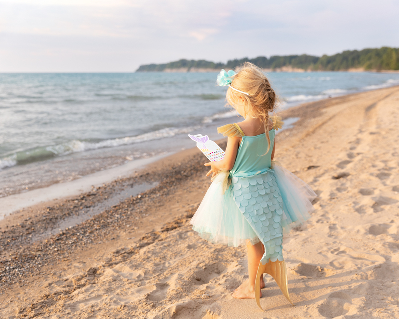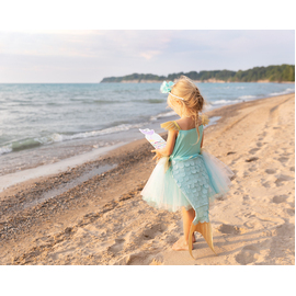 Dive into a colourful world of pretend play with this gorgeous mermaid costume. The dress features stunning teal and gold accents, and is guaranteed to make your little one the most fashionable mermaid both on land and in the sea!