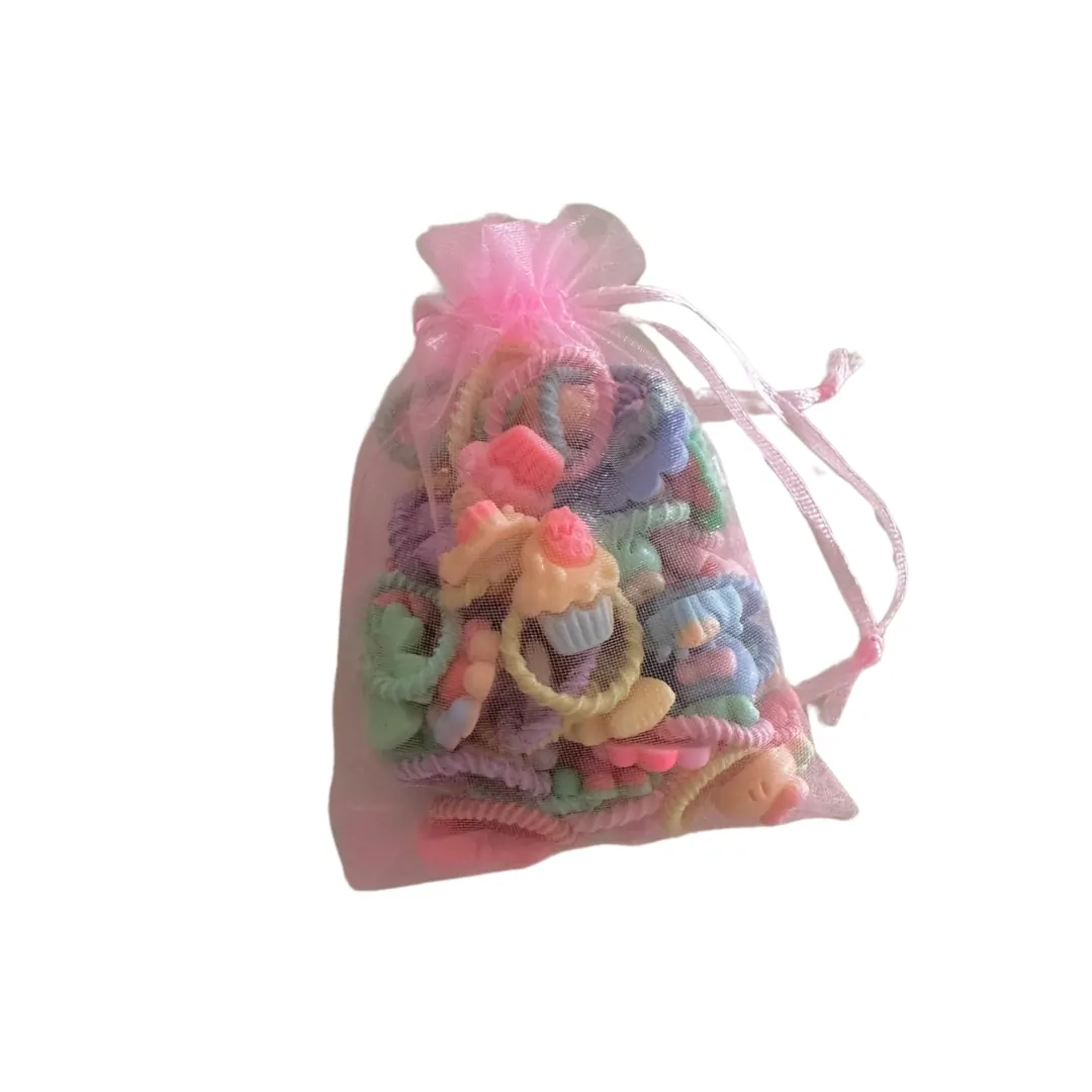 Cute little bag of the sweetest kids hair ties, perfect for toddlers or to tie the end of your Poppet locks plait set of 30 comes in a pink pouch