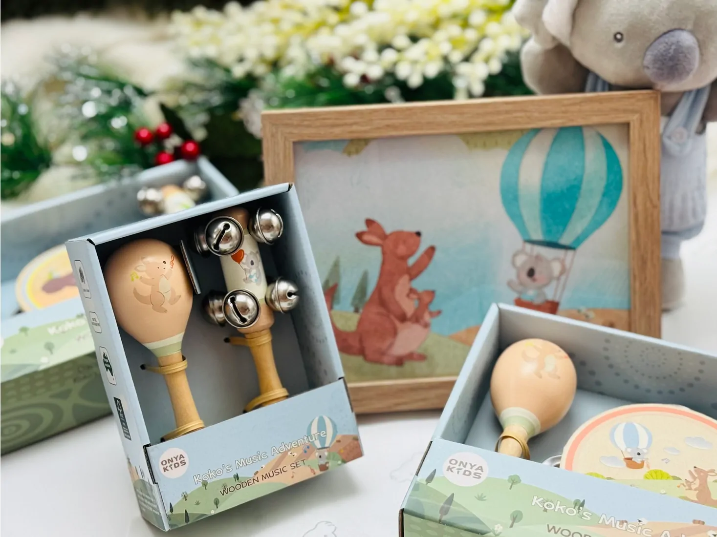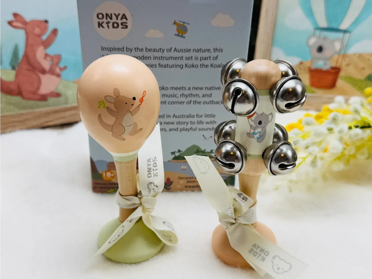 Onya Kids – Premium Play with Heart & Imagination Introducing The Koala Family Series from Onya Kids, our premium collection designed to inspire creativity, storytelling and a love for Aussie nature. Thoughtfully created with quality materials and charming characters, this series brings Australian wildlife to life through play, music and imagination. KoKo’s Music Adventure – Wooden Music Set (Koala Jingle Stick & Kangaroo Maracas) (FSC Certification) Let little ones shake and jingle along with KoKo the Koala and his bouncy friend Kangaroo-Katie! This beautifully crafted 2-piece wooden music set is part of The Koala Family Series — a growing world of story and play by Onya Kids.