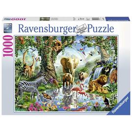 A 1000pc jigsaw puzzle for the animal lovers! You will find a diverse collection of wild animals to admire in this beautifully illustrated Adventure In The Jungle Jigsaw Puzzle by Ravensburger. Enjoy puzzling what looks like paradise, where each part of the animal kingdom depicted, is in complete harmony with one another.