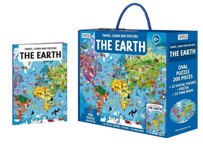 Sassi Travel, Learn and Explore - Puzzle and Book Set - The Earth, 200 Pcs