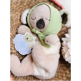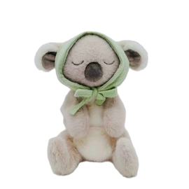 Sleeping Friends Collection by Little Cloud The Little Cloud Sleeping Friends are created for calm cuddles, soft moments and gentle bedtime routines. Made from velvety plush with soothing pastel tones, they are perfect for prams, nurseries and quiet snuggle time. Sleeping Koala: Our sleeping koala drifts off under a gentle green bonnet. With fluffy ears, she brings a quiet sense of calm to any little one’s space. There is a little pouch on the koala's chest.