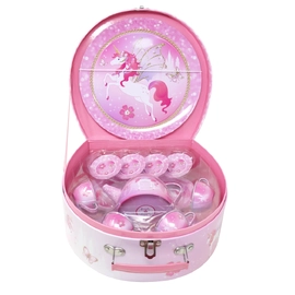 Unicorn Princess 15 pc Tin Tea Set In Carry Case